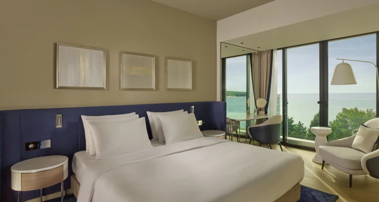 Okrenuti prema otvorenom moru i okruženi gustim zelenilom, naša ekskluzivna lokacija je upravo ono što vam je potrebno za opuštajući boravak. Svijetle, ali udobne, naše elegantne sobe i apartmani Collection odlikuju se neutralnim tonovima s naglascima inspiriranim azurnim Jadranom. Opustite se u prostranim bračnim krevetima i uživajte u mekom kućnom ogrtaču i papučama dok birate između pogleda na vrt ili more.