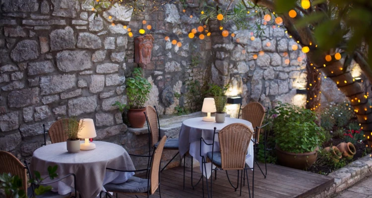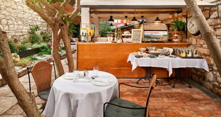 U jutarnjim satima doručak se poslužuje u ugodnoj hladovini unutar starih zidina. U popodnevnim satima možete predahnuti i opustiti se čitajući dobru knjigu koju možete pronaći u našoj hotelskoj knjižnici.
