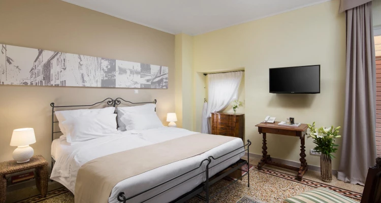 Naše elegantne hotelske sobe su namještene i uređene u toplim,  mekimi zemljanim tonovima I nude modernu udobnost u tradicionalnom stilu. Svaka soba je unikatna, ali sve imaju jednaku razinu komfora i nude iste pogodnosti. Sve hotelske sobe opremljene su klima uređajem, besplatnim aparatom za kavu, mini barom, Wi-Fi vezom, vlastitom kupaonicom i odvojivim krevetima na zahtjev. Svaka od šest vrsta soba Hotela Angelo d'Oro, nudi savršen smještaj za Vaš boravak u Rovinju.