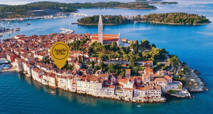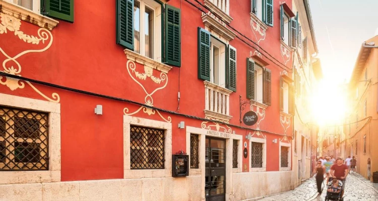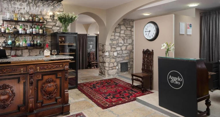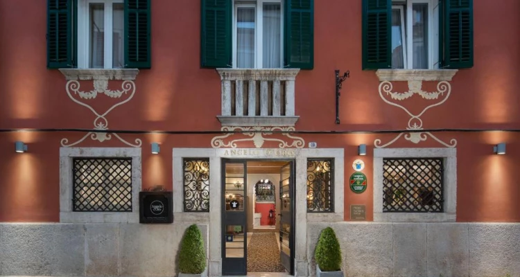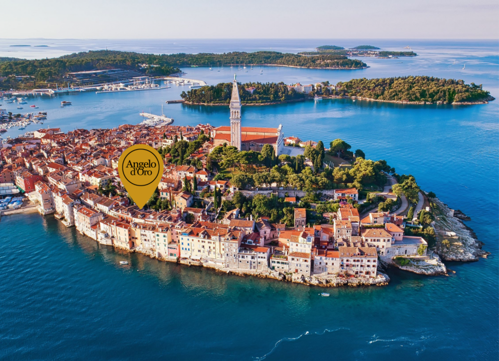 Hotel ima prekrasan pogled na more kao i na pripadajući zeleni vrt. Smješten u nekadašnjoj biskupskoj palači iz 17. stoljeća, Hotel Angelo d’Oro odiše diskretnom elegancijom i gostoljubivom atmosferom tradicionalne istarske privatne vile u Starome Gradu Rovinja. Nudeći nenadmašnu razinu gostoljubivosti kroz uslugu noćenja s doručkom i originalnu lepezu estetike, savršena je baza za istraživanje Rovinja i njegove okolice.