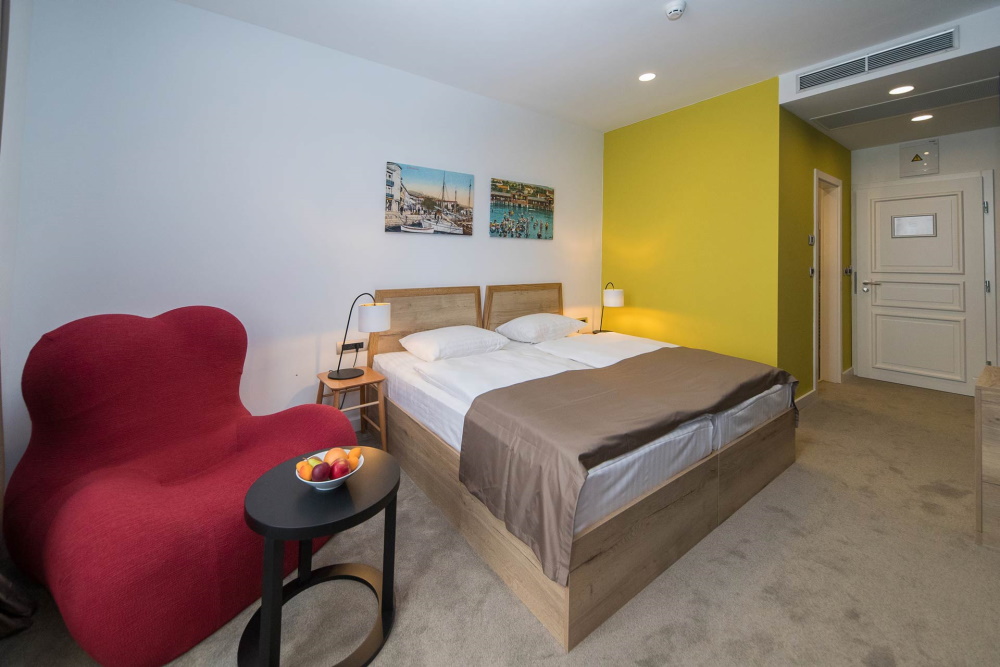 Odvojeni ležajevi / Bračni krevet, Posluga u sobu, Balkon, Klima uređaj, Privatna kupaonica i WC, Sušilo za kosu, Mini bar, Sef u sobi, TV, Satelitska televizija, Direktna telefonska linija, Wi-Fi, Kućni ogrtač, Kućne papuče, Dozvoljeni kućni ljubimci, Kuhalo za vodu i vrećice čaja.