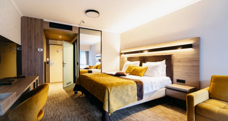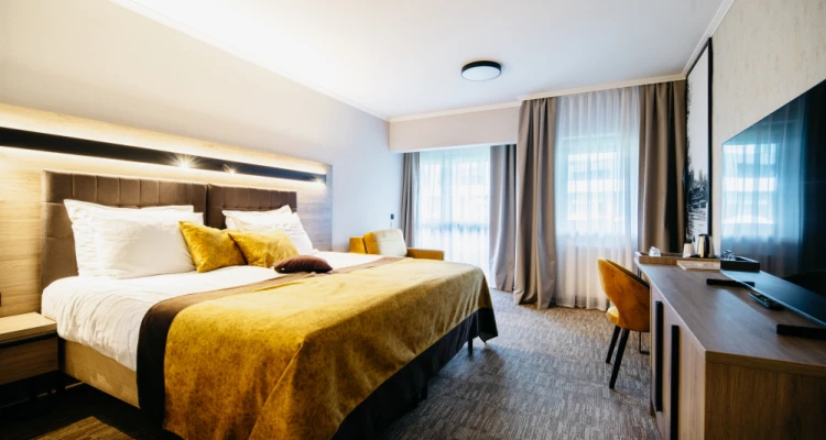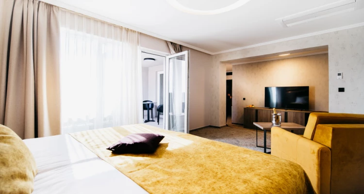 Elegantno opremljena Deluxe soba s balkonom koja pruža prekrasan pogled na park ili pokrajinu. Soba uključuje udobni bračni krevet ili dva odvojena kreveta, suvremeni prostor, klima uređaj, televizor s ravnim ekranom, mini bar i besplatan Wi-Fi. Gostima su na raspolaganju i mekani ogrtači za kupanje, papuče, vrhunski kozmetički proizvodi i mogućnost posluge u sobu. Soba je primjerena za goste koji žele opuštajući boravak u zagrljaju prirode.