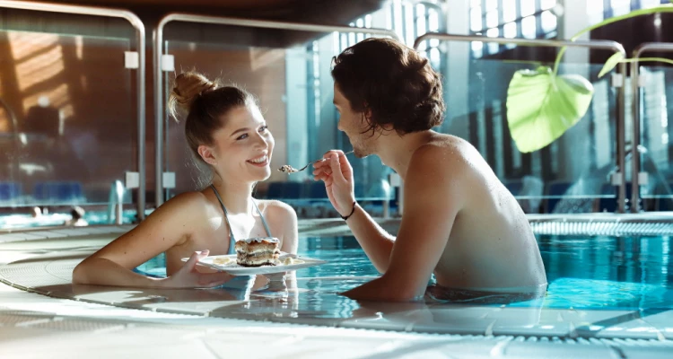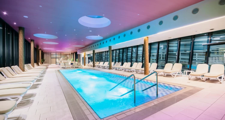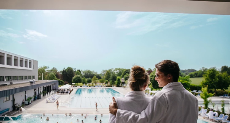 Ljekovita termalna voda koja blagotvorno djeluje na kožu i tijelo te pogled u plavu dubinu pružit će vam pravo zadovoljstvo. Jutarnje buđenje u bazenu, piće uz bazen ili raskošna vodena zabava? Imamo sobe i sadržaje za različite želje ili raspoloženja. Razmazite se u našoj mirnoj oazi, u kompleksu unutarnjih bazena ili uživajte na terasi uz vanjske bazene.