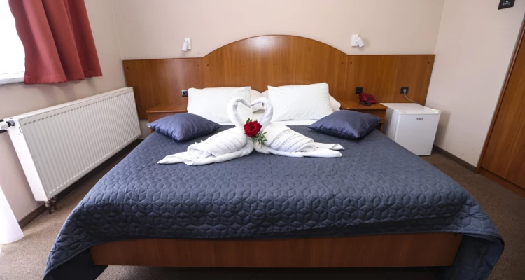 Standard dvokrevetna soba opremljena je s dva odvojena ležaja širine 90cm. (Na Vaš zahtjev neke sobe se mogu prilagoditi u sobu s bračnim krevetom.) te Smart room sistemom. U sobi je gostima na raspolaganju: besplatni Wi-Fi Internet, LED-TV/SAT, radni stol, hladnjak. Kupaonica je opremljena s tušem i sušilom za kosu. Klimatizacija u ljetnom dijelu sezone i grijanje u zimskom dijelu sezone. Posluga u sobu na upit, Telefon s izravnim biranjem, Utičnice 220 V.
