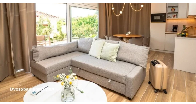 Opremljenost apartmana: potpuno opremljena kuhinja: hladnjak, perilica posuđa, električni čajnik, mikrovalna pećnica, posuđe, kupaonica: tuš, sušilo za kosu, WC, 2x besplatne toaletne potrepštine i toaletni papir, perilica i sušilo za rublje, glačalo i daska za glačanje, ručnici i krevetnina, klima i grijanje, flat-screen TV +, bračni krevet i kauč na razvlačenje ili fotelja-ležaj, ormar u svakoj sobi, sef, besplatan Wi-Fi, dječji krevetić dostupan je besplatno na zahtjev.