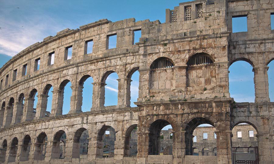 Najpoznatiji i najznačajniji spomenik, građevina od koje započinje i završava svaki obilazak grada – puljska Arena – građevina u kojoj su se priređivale borbe gladijatora. Građena je u I stoljeću, u vrijeme vladavine cara Vespazijana, istovremeno s najvećom i najpoznatijom građevinom te vrste – Koloseumom u Rimu.