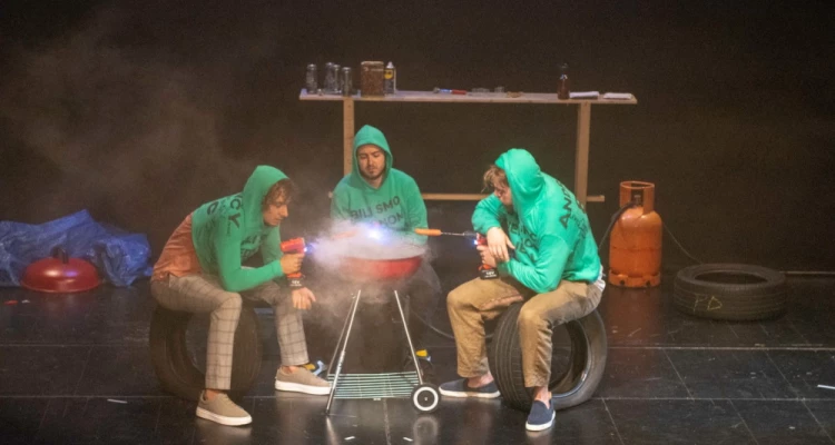 Predstava Prijatelji, autorskog dvojca Vanje Jovanovića i Filipa Jurjevića, moderna su I dinamična predstava o odrastanju i prijateljstvu koju nose tri glumačka “mlada lava”- Filip Vidović (najzaigraniji i najmanje konvencionalan), Karlo Bernik (zadužen za toplinu I burlesku komunikacije) i Marin Klišmanić (najrezerviraniji od trojice prijatelja).