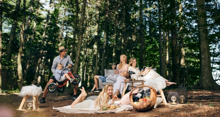 prostoru za opuštanje s čajevima i pogledom na šumu.